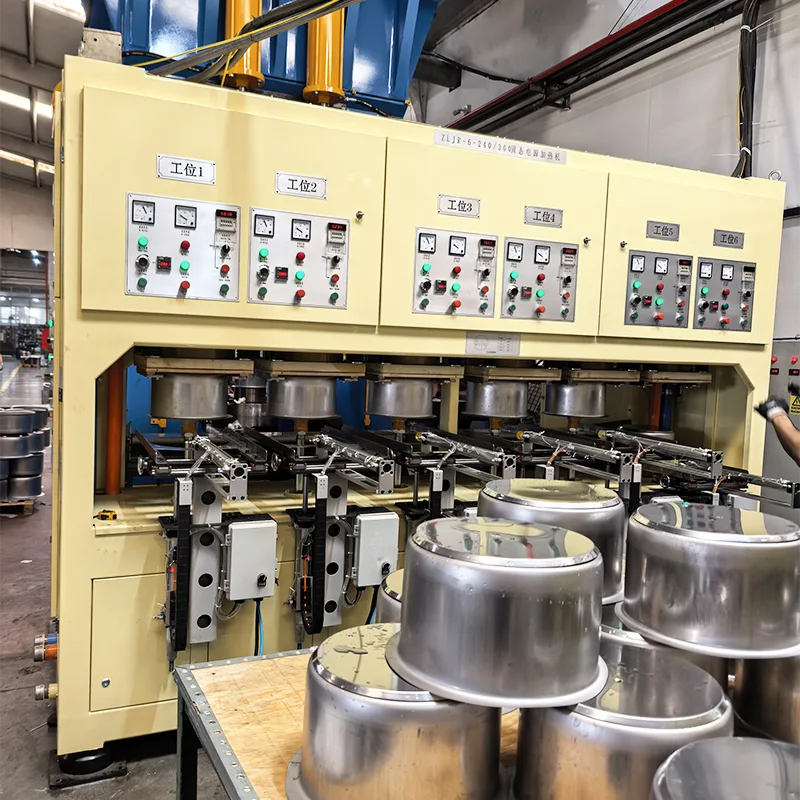 Il sito di lavorazione delle pentole in acciaio inossidabile di una macchina di riscaldamento in linea a cinque stazioni di una nota impresa del Guangdong