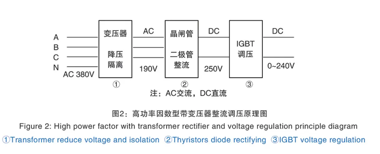 1. Classificato in base alla regolazione della tensione di rettifica: i tiristori (SCR) possono essere utilizzati per completare la rettifica e la regolazione della tensione simultanee, oppure utilizzare prima il diodo o i tiristori che raddrizzano e quindi utilizzare l'IGBT per regolare la tensione. Utilizzare l'IGBT per regolare la tensione per migliorare il fattore dell'apparecchiatura. Può risparmiare elettricità e migliorare ulteriormente la qualità della saldatura.